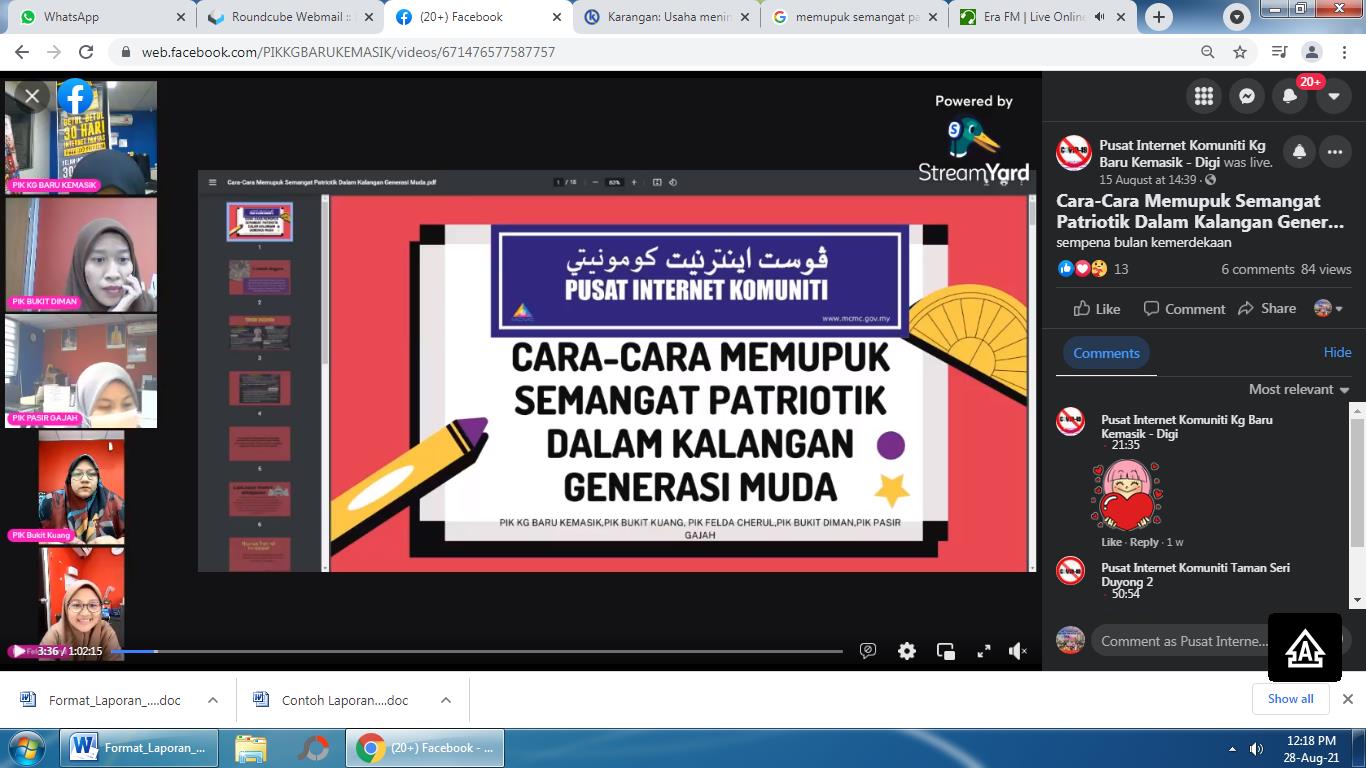 FB LIVE : CARA-CARA MEMUPUK SEMANGAT PATRIOTIK DALAM KALANGAN GENERASI MUDA DIANTARA PIK KG.BARU KEMASIK , PIK BUKIT DIMAN, PIK BUKIT KUANG, PIK FELDA CERUL DAN PIK PASIR GAJAH
