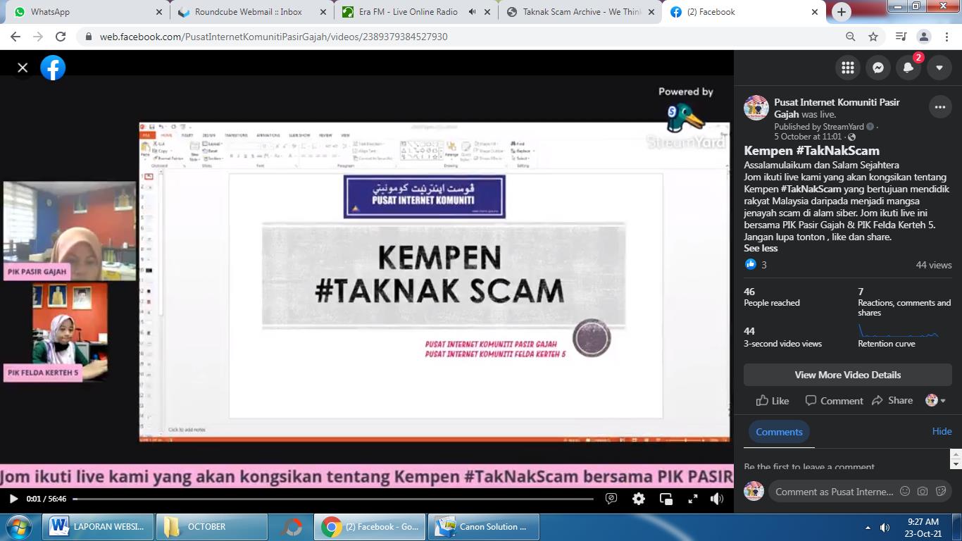FB LIVE : PERKONGSIAN TENTANG KEMPEN #TAKNAKSCAM DIANTARA PUSAT INTERNET KOMUNITI PASIR GAJAH & PUSAT INTERNET KOMUNITI FELDA KERTEH 5